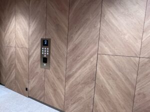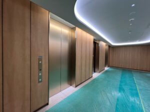 エレベーターの内装は、まだ養生してありますが