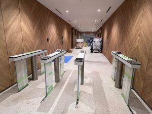 利用者に応じてエレベーターを割り当て、ゲート通過時に乗車するエレベーターの号機が