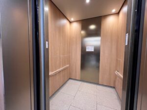 博多地区の現場はエレベーターの工事は2月末でほぼ完成となります。